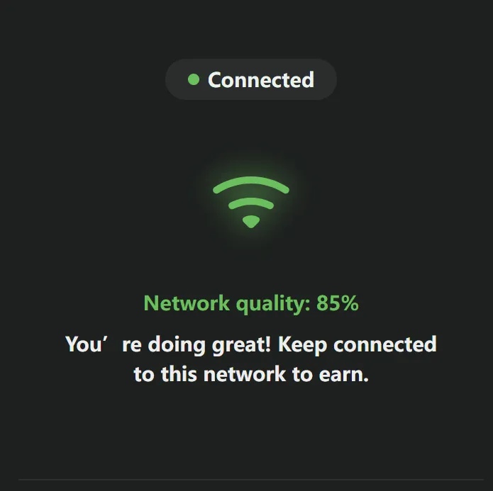 回到 Grass 官网,刷新页面。页面右上角应显示“Connected”标志,这意味着您已成功接入 Grass 网络。